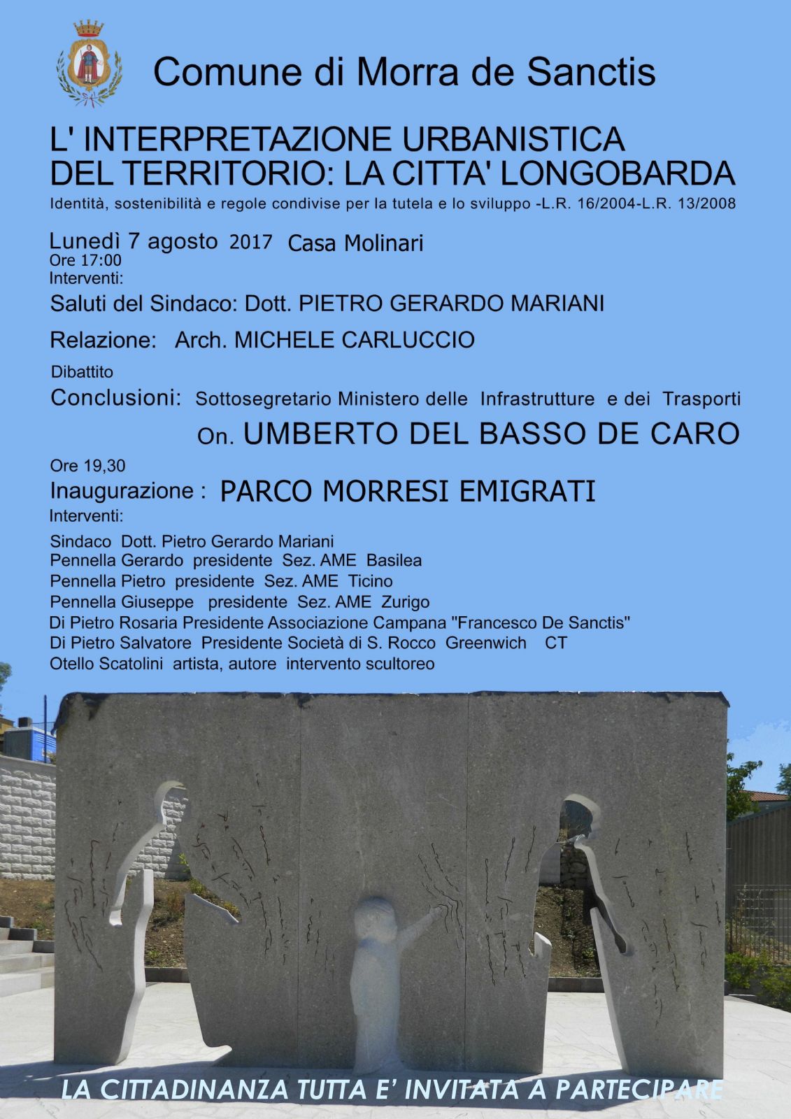LUNEDI 7 AGOSTO 2017 INAUGURAZIONE DEL PARCO MORRESI EMIGRANTI - LA CITTADINANZA TUTTA E' INVITATA A PARTECIPARE